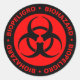 Biohazard - Biopeligro - pegatina bilingüe rojo y negro del símbolo de riesgo biológico anglo-español.