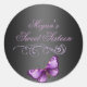 Este elegante sello para sobres de personalizable dulce dieciséis cumpleaños presenta mariposas violetas en un fondo negro. Personalizar añadiendo tus detalles en el color y la letra de tu elección!