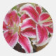 Una hermosa imagen de Star Gazer Lilies en un pegatina redondo.