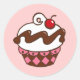 Un pastel con chocolate y una cereza roja brillante decoran este pegatina. El diseño es de arte original.