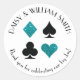 El brillo verde azulado falso y los palos de cartas negros están rodeados de texto personalizable, lo que hace que estas pegatinas redondas sean perfectas para todo tipo de proyectos y ocasiones. Úsalas para etiquetar los detalles para los invitados de la boda, para cerrar sobres y más.