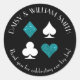 El brillo verde azulado falso y los palos de cartas blancos están rodeados de texto personalizable, lo que hace que estas pegatinas redondas sean perfectas para todo tipo de proyectos y ocasiones. Úsalas para etiquetar los detalles para los invitados de la boda, para cerrar sobres y más.