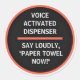 "Dispensador de voz activada - Diga en voz alta '¡Toalla de papel ahora!'" Pegatina