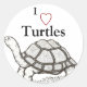En este pegatina está impreso un dibujo detallado de una tortuga con lápiz y tinta. Este pegatina está impreso con las palabras y símbolos que amo a las tortugas.