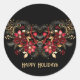 Redonda Pegatina de vacaciones de flores rojas decorativas
