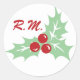 Redonda Pegatina de vacaciones en monograma Holly Leaves y