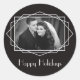Este pegatina de vacaciones geométricas inspirado en el art deco se personaliza con tu propia foto especial, sobre un elegante fondo negro que lo mantiene simple y elegante para las vacaciones.