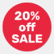 Redonda Pegatina de venta 20% de descuento - Rojo y Blanco