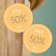 Estos pegatinas básicos de venta de naranjas son personalizables. Puede editar el porcentaje como desee. El estilo básico es más adecuado cuando usted tiene una marca ya existente pero necesita pegatinas de ventas.