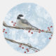 Este Pegatina de Winter Chickadee presenta una pintura de mi ratón sobre un pollo en la nieve. ¡Perfecto para las vacaciones!
