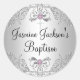 Redonda Pegatina del bautismo de gaviota rosa y plateado