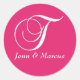 Redonda Pegatina del Boda Fuchsia White Monogram T