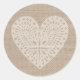 Un pegatina elegante y moderno con un ilustracion de corazón blanco inspirado en el arte folclórico sobre una imagen de fondo de burlap. Busque las invitaciones a la boda coincidentes y más en Jill's Paperie.