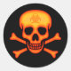 Pegatina negro con cráneo de riesgo biológico naranja y huesos cruzados.