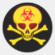 Redonda Pegatina del cráneo de riesgo biológico amarillo