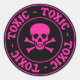 Tóxico - letras rosadas calientes con cráneo y huesos cruzados.