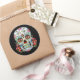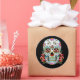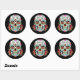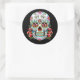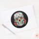 Pegatina redonda con la imagen de un Día del Calavero Muerto decorado con flores y viñas rosas, rosas rojas y una cruz con cuatro gotas de sangre sobre negro. El Día de los Muertos, o Día de Todas las Almas, se celebra el 2 de noviembre en varios países europeos y latinoamericanos. En México, el periodo de las festividades del Día de Todas las Almas se lleva a cabo durante varios días, incluyendo el Día de Todos los Santos el 1 de noviembre. Vea la tarjeta postal y la etiqueta coincidentes. Ver toda la colección de Pegatinas de México en la sección CARDS, POSTCARDS & PEGATINAS.