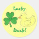 Redonda Pegatina del Día del Pato Afortunado Shamrock Duck