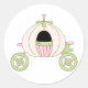 Pegatina redondo, con gráficos rosa y verde bonito de un entrenador de calabaza apto para una princesa. Excelente con nuestras invitaciones para el cumpleaños de Princesa, como favores o sellos para sobres de fiesta. Personalizar para agregar el texto que desee.