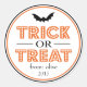 Felices Halloween Trick or Treat Vampire Bat Favor Labels / Pegatinas (Naranja / Negro / Blanco)... Estos pegatinas divertidos, lindos y espeluznantes / espeluznantes / temibles de Halloween son la adición perfecta a los dulces que pasarás en tu obsequiada fiesta de Halloween. Ya sea que estés teniendo una casa embrujada en tu casa, repartiendo dulces para engañar o tratar, trayendo galletas o productos horneados para tus empleados o compañeros de trabajo, o que tu estudiante favorito (o profesor para tal caso) esté trayendo mercancía para un salón de clases de estudiantes en Halloween, estas etiquetas favoritas son perfectas para cualquier ocasión de Halloween. Personalizable total...sólo cambia el nombre del generoso goblin, bruja o monstruo que está proporcionando la comida y el año y tus pegatinas favoritos están listos para ser usados. Ideal para que cualquier profesor entregue a su aula de nuevos alumnos. También es perfecto para que cualquier estudiante traiga artículos para sus nuevos compañeros de clase. Disponible en una amplia gama de colores. Visita WindyCityStationery.com para ver nuestra línea completa de etiquetas en una amplia gama de colores, así como sellos postales coincidentes, tarjetas de agradecimiento, etiquetas de dirección de retorno, guardar las fechas, clase de graduación de pegatinas, pegatinas de favores matrimoniales y más.