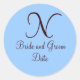 Redonda Pegatina del favor de la boda de monograma azul y