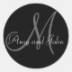 Redonda Pegatina del favor de la boda monograma negro