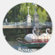 Barcos cisnes junto al puente en el jardín público de Boston, Boston, Massachusetts.