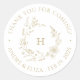 Elegante Boda De Monograma Floral Gracias Pegatinas. Inicialmente monogramado enmarcado por una mano elegante ilustra escudo vintage en un estilo sabio, sencillo pero sofisticado. La elección perfecta para los bodas modernos, clásicos y sencillos.