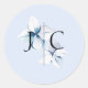 Redonda Pegatina del Monograma Hidrangea Azul