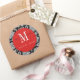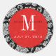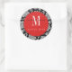 Redonda Pegatina del Monograma Rojo de Damasco Negro