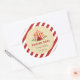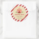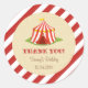 Pegatina redondo para la fiesta de cumpleaños con diseño de carpa de circo y combinación de color rojo.
