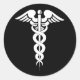 Redonda Pegatina del símbolo médico del Caduceo blanco y n