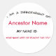 Personalizar con el nombre de su antecesor para su uso como etiqueta de nombre en reuniones familiares. Cambie el texto y pida las etiquetas de nombre impresas individuales para los asistentes, o deje este área en blanco para escribirla más tarde.