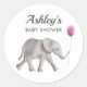 Redonda Pegatina favorito de ducha de elefante bebé rosa,
