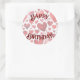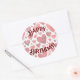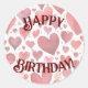 Redonda Pegatina feliz cumpleaños de corazones rojos