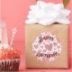 Diseño abstracto que muestra los corazones rojos al estilo acuarela en varios tamaños, semitransparentes, junto con las palabras "¡Feliz cumpleaños!". El pegatina puede ser personalizado: puedes añadir tu propia imagen y tus propias palabras. Este pegatina es perfecto para ponerlo en sus envolturas de regalo.