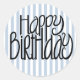 Redonda Pegatina Feliz cumpleaños de franjas azules