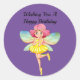 En este pegatina circular aparece una imagen dulce de un hada con pelo rosado. Con el mensaje "Deseándote un cumpleaños feliz", este pegatina es perfecto para ese correo especial o regalo para el cumpleaños de un niño! También se puede utilizar para la decoración, la reserva de chatarra y más!