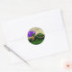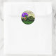 Feliz cumpleaños Pegatina con diseño de tortuga espumosa. Tortuga verde con hongo morado y chispas. Personaliza el nombre del niño.