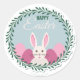 Muestran con algunos huevos de Pascua y tiene este pegatina blanco lindo del conejito un marco del follaje con las palabras "Pascua feliz". (<a href='http://www.freepik.com/free-vector/floral-easter-egg-stickers-set_1045402.htm'>Diseñado por Freepik</a>). <br/><br/>La tarjeta es fácil de modificar para requisitos particulares con su fraseología, fuente, color de la fuente y opción de seis tipos de papel<br/><br/>¿Qué usted está buscando no exactamente? Todos nuestros productos se pueden crear para requisitos particulares para cubrir sus necesidades en ningún recargo<br/><br/>Éntrenos en contacto con simplemente en askcottonlamb@gmail.com<br/><br/>Productos de coordinación disponibles: