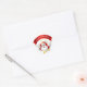 Esta encantadora pegatina presenta un saludo navideño en una pancarta roja y un feliz Papá Noel que rompe el papel blanco.