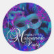 Redonda Pegatina Fiesta de mascarada floral púrpura y Verd