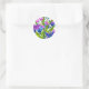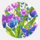 Redonda Pegatina floral azul y púrpura con mariposas