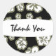 Redonda Pegatina floral de hibisco elegante blanco y negro