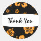 Redonda Pegatina floral de hibisco elegante naranja y negr