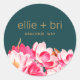 Elegante pegatina redonda con brillantes magnolias rosadas vintage coloridas.