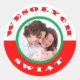 Sube tu foto de familia para crear pegatinas personalizados de Navidad para tus Navidades de familia polaco-norteamericanos que envían por correo postal. Los pegatinas tienen el motivo de la bandera polaca roja y blanca con la foto de tu familia en medio y el deseo de vacaciones, Wesolych Swiat! Feliz Navidad!