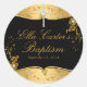 Redonda Pegatina Gold Black Floral Swirl & Cross Baptism