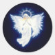 Este ángel brillante está rodeado por un fondo azul oscuro. Este pegatina es perfecto para actividades religiosas (fiestas de la iglesia, VBS, etc.) o para cualquier otra ocasión.
