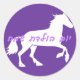 Bonito gráfico de un caballo blanco sobre un fondo morado con un marco diferente de violeta. Con las palabras "Feliz Cumpleaños" en texto blanco en morado. Por el amante del caballo.